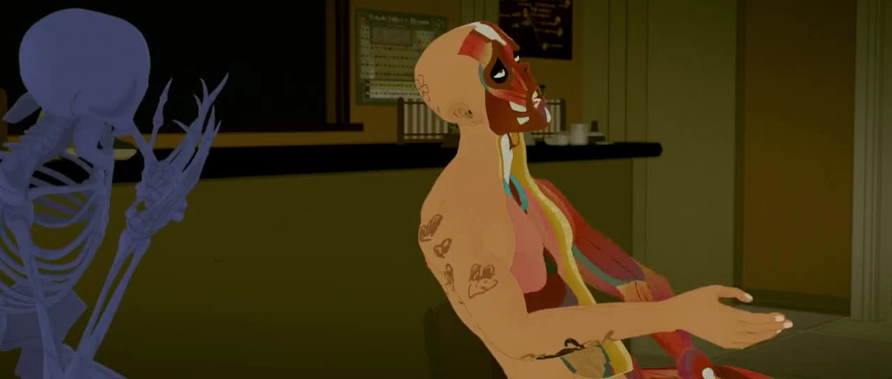 Юные Мако, Мико и Муцуко приходят на день открытых дверей начальной школы Сент-Клер. Блуждая по коридорам, девочки попадают в заброшенный научный кабинет, где находят анатомическую модель человека – ту самую, у которой отсутствует часть кожи, видны мышцы, вынимаются внутренности и глаза. Потрясенные дети решают сделать несчастного немного красивее. Однако внезапно муляж оживает. На самом деле это великий ученый Кюнстлиджик, один из Полуночников – существ, живущих в ночной школе. Увидев, как разукрасили его дошколята, Кюнстлиджик свирепеет и решает им отомстить. Вместе со своим партнером и соседом по кабинету, моделью скелета по имени Гот, взбешенное учебное пособие разрабатывает план мести под названием «Ночная школьная вечеринка».